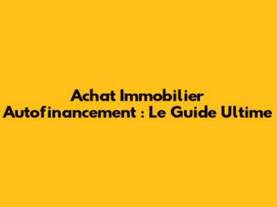 Comment Réussir Votre Achat Immobilier en Autofinancement : Guide Pratique