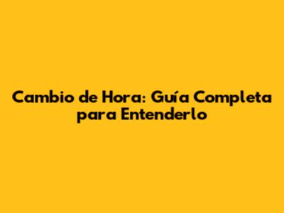 Cambio De Hora: Guía Completa Para Entenderlo