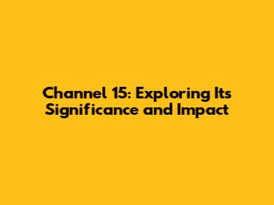 Channel 15: Exploring Its Significance And Impact