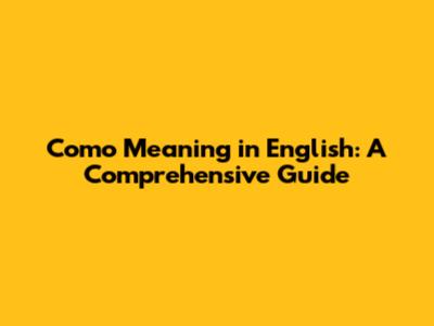 Como Meaning: Unpacking The Word's English Translations