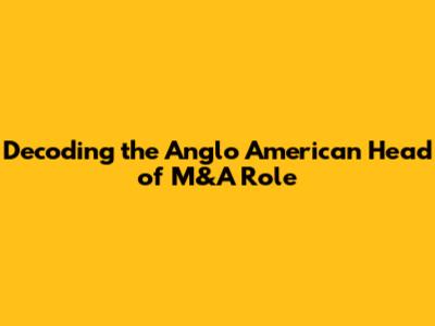 Decoding The Anglo American Head Of M&A Role
