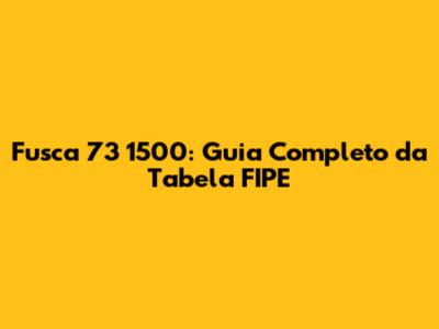 Fusca 73 1500: Guia Completo Da Tabela FIPE