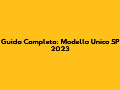 Guida Completa: Modello Unico SP 2023