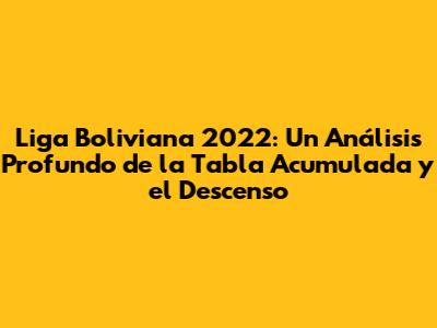 Liga Boliviana 2022: Tabla Acumulada Y El Descenso
