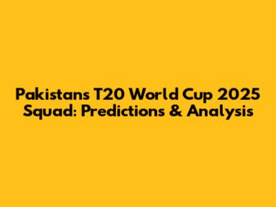 Pakistan's T20 World Cup 2025 Squad: Predictions & Analysis