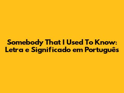 Hey guys! Ever found yourself humming a tune, totally captivated by its melody, but completely lost on what the lyrics actually mean? Well, you're not alone! Today, we're diving deep into Gotye's smash hit, "Somebody That I Used To Know." This song is more than just a catchy earworm; it's a poignant exploration of heartbreak, shifting relationships, and the painful process of moving on. We'll be looking at the literal translation of the lyrics in Portuguese, the deeper meanings hidden within them, and how they resonate with so many of us. So, grab your headphones, get comfy, and let's unravel this musical masterpiece together.