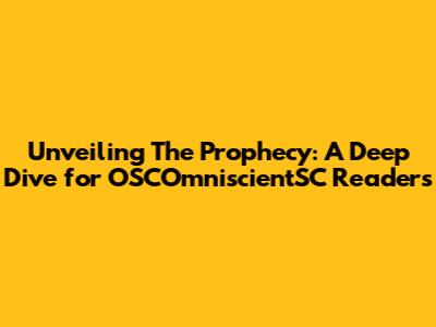 Final Thoughts: Why 'The Prophecy' Matters for OSCOmniscientSC Readers
