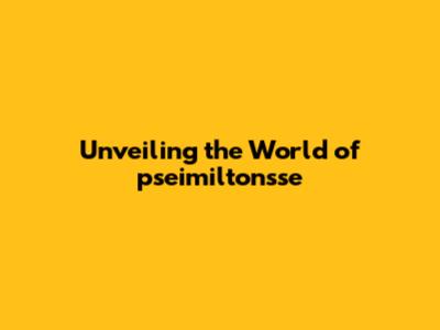 Unveiling The World Of Pseimiltonsse